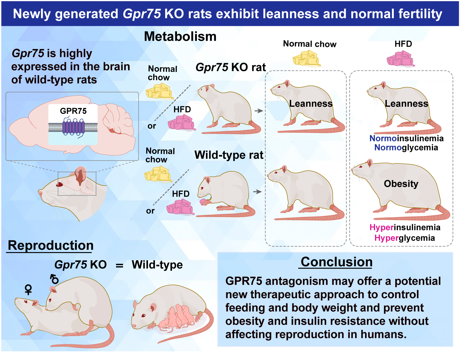 Inter-relationship between body weight regulation and fertility has long fascinated researchers and clinicians in the area of endocrinology. However, an avalanche of enigmas still remains around the molecular mechanism. In this issue, Dr. Yuki Otsuka, Dr. Yoshitaka Uenoyama, Professor Hiroko Tsukamura and colleague at Nagoya University unravel a role of “orphan ligand” receptor, GPR75, in the control of appetite and reproduction in knockout rat models. Because loss of function variants of GPR75 gene is implicated in the protection of obesity in humans via the worldwide, large-scale exome sequencing, this excellent article provides all readers with fresh avenue to integrate the latest genome science and such a sophisticated basic research.